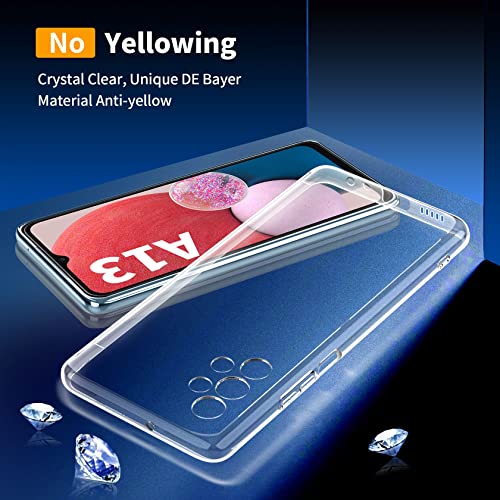 Qasyfanc Cover Protezione Fotocamera Compatibile con Samsung Galaxy A13 4G Cover (Non Adatto per 5G) con 2 Pezzi Vetro Temperato Pellicola Protettiva, Custodia Silicone Sottile e Morbida, Trasparente