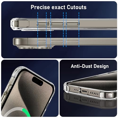 Qasyfanc Hybrid Cover Magnetica per iPhone 15 Pro e Protezione Fotocamera, Cover iPhone 15 Pro Compatible con MagSafe Custodia Antiurto Sottile, Trasparente