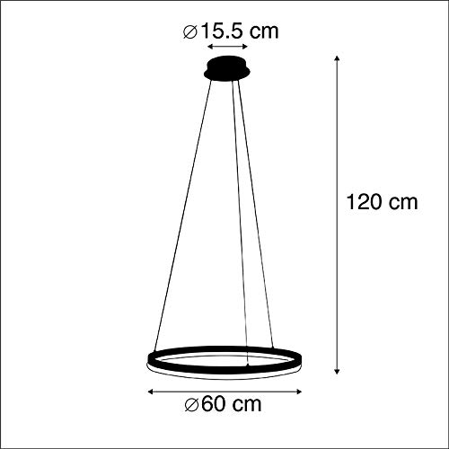 QAZQA anello - LED Lampada a sospensione Moderno - 1 luce - Ø 600 mm - Nero - Moderno - Soggiorno I Camera da letto I Sala da Pranzo I Cucina