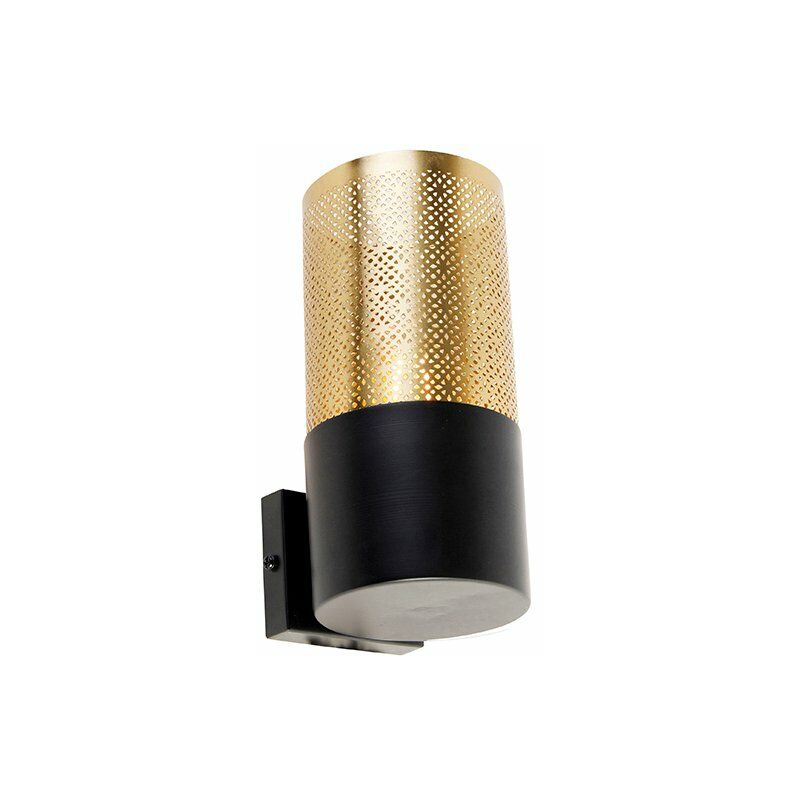 QAZQA Lampada da parete industriale nera con oro 7,5 cm - Raspi Che bella lampada da parete! Raspi è realizzato in acciaio e rifinito in oro con nero. I piccoli fori del paralume creano un suggestivo effetto di luce sulla parete. La combinazione di nero e oro rende la lampada molto lussuosa! Raspi ha un diametro di 10 cm, un'altezza di 27 cm e una lunghezza di 7,5 cm. La piastra di montaggio ha una profondità di 2 cm, un'altezza di 10 cm e una lunghezza di 8 cm. Completi la lampada da parete con una sorgente luminosa con attacco E27 (max. 25 Watt). Non dimenticare di ordinarli separatamente. Raspi sta benissimo nell'ingresso, sopra il comodino o in soggiorno. Aggiungi atmosfera ai tuoi interni con Raspi! Portalampada: E27 . Max 1 x 25 W, 230 V Adatto a: Algogene, Incandescente,Risparmio energetico, LED Voltaggio: 220V/230V IP Classe di protezione: [IP20] A prova di polvere Funzioni extra: Regolabile: Dimmer escluso Lampadine exclusiva Il QAZQA Lampada da parete industriale nera con