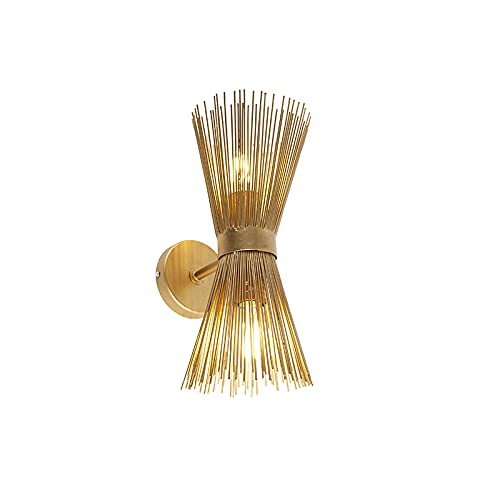 QAZQA broom - Appliques rustico - 2 luce - L 16 cm - Oro/Ottone - rustico - Soggiorno I Camera da letto I Sala da Pranzo I Cucina