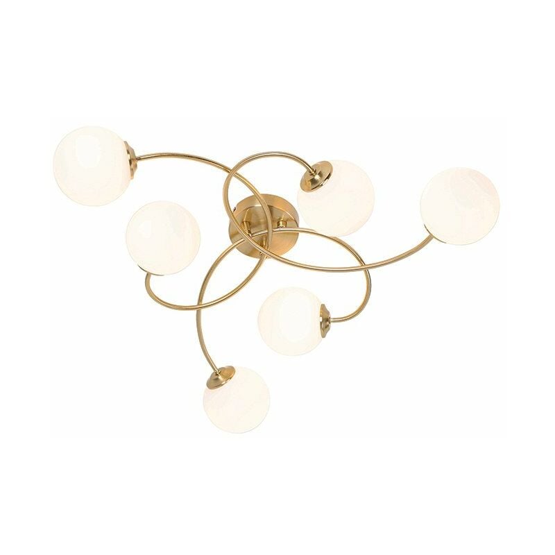 QAZQA Plafoniera moderna oro con vetro opale 6 luci - Atene Cerchi una plafoniera moderna per la tua casa? Allora Atene è quello che stai cercando! Le 6 diverse lampadine la rendono una lampada giocosa! È realizzato in acciaio con vetro e rifinito in oro. I paralumi in vetro opale assicurano che la luce non risplenda direttamente negli occhi, ma che la luce si diffonda gradualmente nella stanza. La lampada da soffitto ha una profondità di 45 cm, un'altezza di 16 cm e una lunghezza di 52 cm. La piastra di montaggio ha un diametro di 10 cm e un'altezza di 2,5 cm. Finisci Atene con 6 sorgenti luminose con attacco G9 di massimo 28 watt. Assicurati di ordinarli separatamente. Questa allegra lampada da soffitto si adatta perfettamente al soggiorno, alla sala da pranzo o alla camera da letto! Portalampada: G9 . Max 6 x 28 W, 230 V Adatto a: Algogene, LED Voltaggio: 220V/230V IP Classe di protezione: [IP20] A prova di polvere Funzioni extra: Regolabile: Dimmer escluso Lampadine exclusiva Il