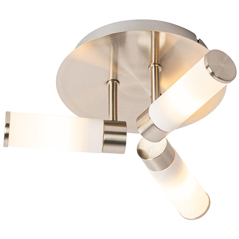 QAZQA Plafoniera da bagno moderna in acciaio a 3 luci IP44 - Bath La lampada da bagno Bath si inserisce perfettamente in un ambiente moderno. La lampada è realizzata in acciaio e vetro ed è rifinita in acciaio. I 3 punti luce la rendono un vero e proprio elemento d'atmosfera! La lampada ha un diametro di 28,5 cm e un'altezza di 9,8 cm. Non dimenticare di ordinare separatamente le lampadine con attacco G9. Queste non sono incluse. Con il suo grado di protezione IP44, questa lampada da bagno è antispruzzo e adatta all'uso in bagno. Si prega di notare che non è protetta contro i getti d'acqua diretti. Crea un'atmosfera ancora più suggestiva in casa attenuando la lampada da bagno. Bath è dimmerabile (dimmer non incluso). Non puoi sbagliare con Bath: vorrai questa lampada da bagno a casa tua, vero? Portalampada: G9 . Max 3 x 28 W, 230 V Adatto a: LED Voltaggio: 220V/230V IP Classe di protezione: IP44 Funzioni extra: Regolabile: Dimmer escluso,No, senza cavo e spina Lampadine exclusiva Il