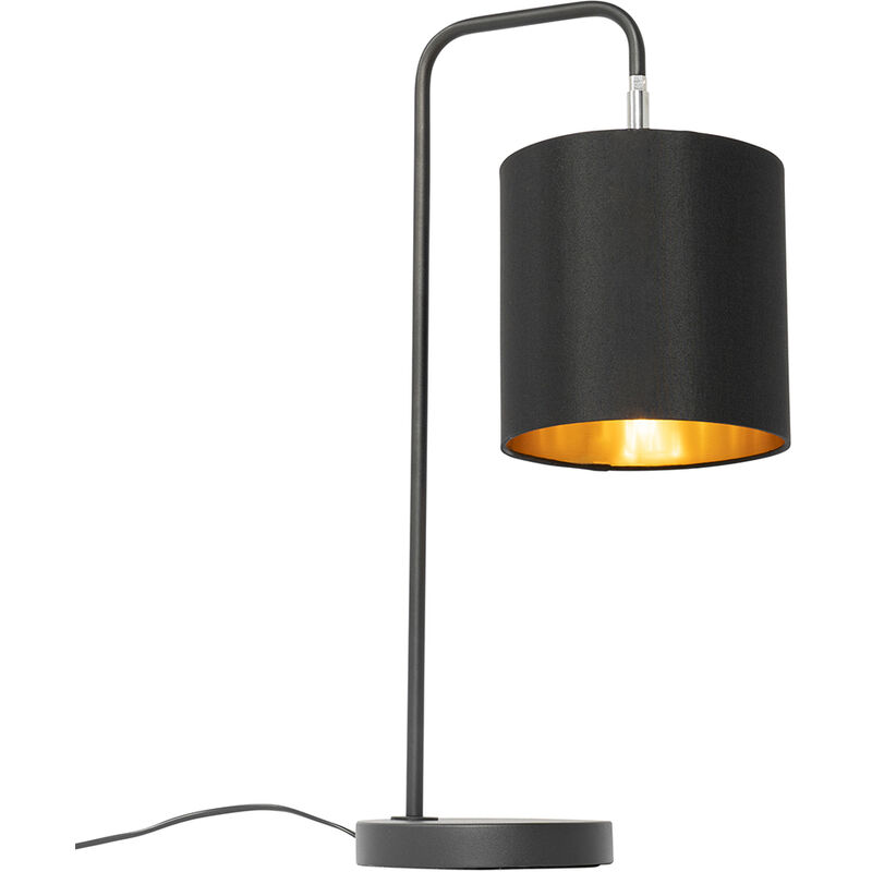 QAZQA Lampada da tavolo moderna nera con interni dorati - Lofty Una graziosa lampada da tavolo! Questa Lofty diffonde una luce piacevole in casa. La finitura è elegante, con un colore nero e un interno dorato del paralume. Ha una profondità di 27,6 cm, un'altezza di 54,5 cm e una lunghezza di 18 cm. L'articolo viene fornito con un cavo lungo 200 cm. Puoi completare la Lofty con una lampadina adatta a un attacco E27 (max. 40W). La lampada può essere anche smorzata con un dimmer esterno. Questa lampada da tavolo crea un'atmosfera accogliente nel soggiorno accanto al divano, in camera da letto o come elemento d'arredo nel corridoio. Scegli la comodità con la Lofty! Portalampada: E27 . Max 1 x 60 W, 230 V Adatto a: LED Voltaggio: 220V/230V IP Classe di protezione: [IP20] A prova di polvere Funzioni extra: Regolabile: Dimmer escluso,Sì, con cavo e spina Lampadine exclusiva Il QAZQA Lampada da tavolo moderna nera con interni dorati - Lofty è Nero. Gli spazi abitativi adatti per questa