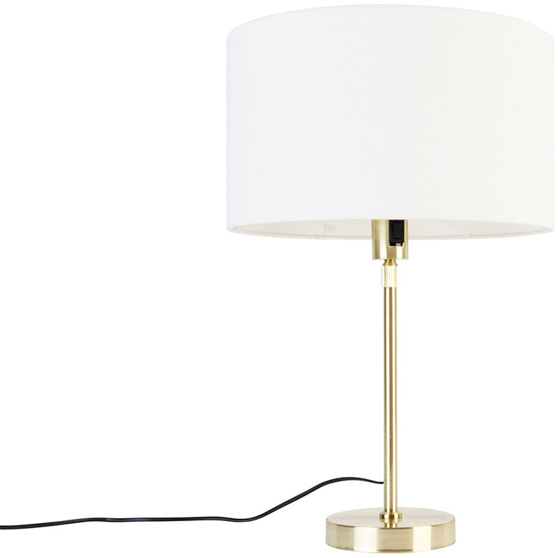 QAZQA Lampada da tavolo oro orientabile con paralume bianco 35 cm - Parte Porta un classico elegante nella tua casa con questa lampada da tavolo Parte. La Parte è una bellissima lampada da tavolo dorata con un paralume bianco che fornisce immediatamente una luce accogliente nella stanza. La lampada da tavolo è anche facile da regolare grazie al meccanismo estraibile tra un'altezza minima di 53,5 e un'altezza massima di 68 cm. La base della lampada ha un diametro di 14 cm. Il cavo in dotazione è lungo 200 cm. Il paralume ha un diametro di 35 cm. Puoi completare la Parte con una sorgente luminosa E27 fino a 60 watt, ma devi comunque ordinarla separatamente. Crea immediatamente un'atmosfera piacevole a casa con questa Parte. Portalampada: E27 . Max 1 x 60 W, 230 V Adatto a: LED Voltaggio: 220V/230V IP Classe di protezione: [IP20] A prova di polvere Funzioni extra: Regolabile: Dimmer escluso,Sì, con cavo e spina Lampadine exclusiva Il QAZQA Lampada da tavolo oro orientabile con paralume