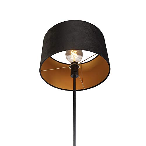 Qazqa parte fl - Lampada da terra con paralume Classico - 1 luce - Ø 350 mm - Nero - Design I Rustico - Soggiorno I Camera da letto