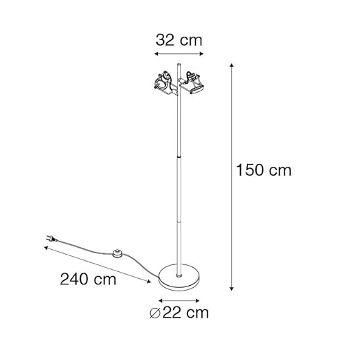 QAZQA suplux - Lampada da terra Industriale - 2 luce - H 1500 mm - Grafite - Industriale,Moderno - Soggiorno I Camera da letto I Sala da Pranzo I Cucina