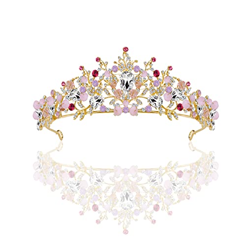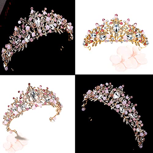 Qazuwa Corona Tiara,Tiara Corona di Cristallo Tiara Strass di Retro Sposa Principessa Corona Corona Regina Strass Corona Principessa Tiara per Feste Matrimoni Compleanni Balli Costumi(Oro Rosa)