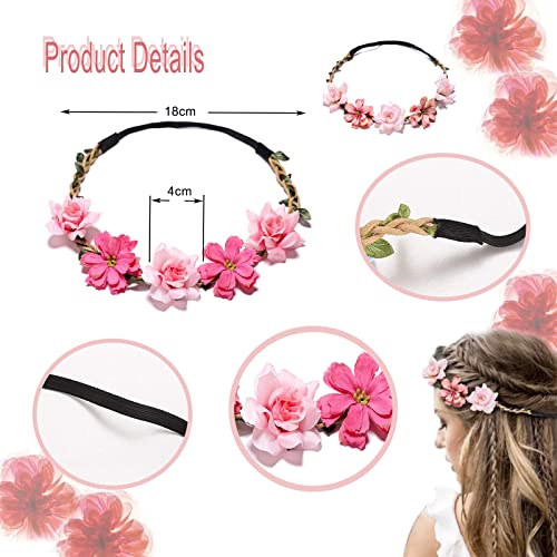 Qazuwa Coroncine Fiori,6 Pcs Ghirlande Fasce con Regolabile Multicolore Ghirlande Fasce ghirlande fasce del fiori Ghirlanda Floreale Corona Fascia per Capelli Bambine Nozze Party Viaggia