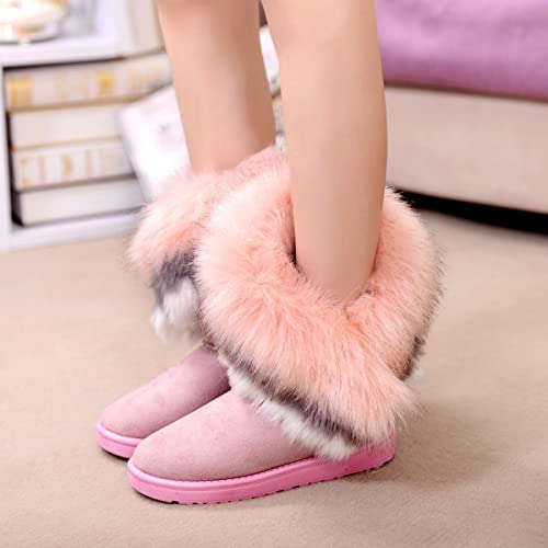 QAZW Scarpe Stivali Invernali da Donna Stivaletti Corti Moda Neve con Fodera Stivali da Neve in Pelliccia Calda Ragazza Scarpe Invernali comode,Pink-38(EU)
