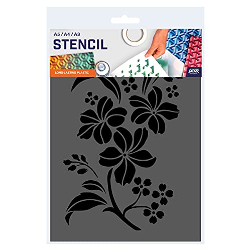 QBIX Stencil di fiori - Fiori e foglie - Formato A5 - Stencil riutilizzabile per bambini fai-da-te per pittura, cottura, artigianato, parete, mobili