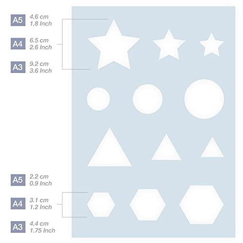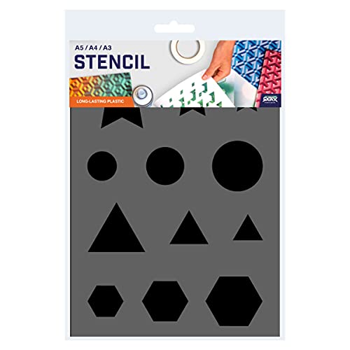 QBIX Stencil a forma primaria - Stella, Triangolo, Cerchio, Esagono - Formato A5 - Stencil fai-da-te riutilizzabile per bambini per pittura, cottura, artigianato, parete, mobili