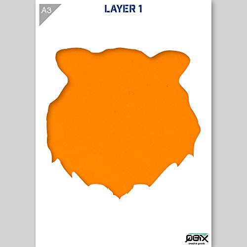 QBIX Stencil testa di tigre - 2 strati formato A3 - Stencil riutilizzabile per bambini fai-da-te adatto per pittura, cottura, artigianato, parete, mobili