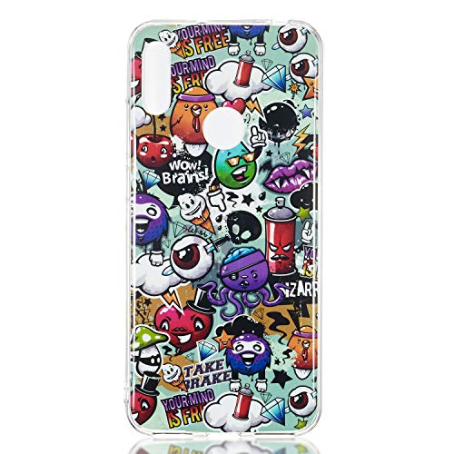 QC-EMART Custodia per Huawei Y6 PRO 2019 Silicone Cover Fluorescent Luminous Glow in The Dark Trasparente Morbida Protezione Sottile Copertura in Gomma TPU, Emoji