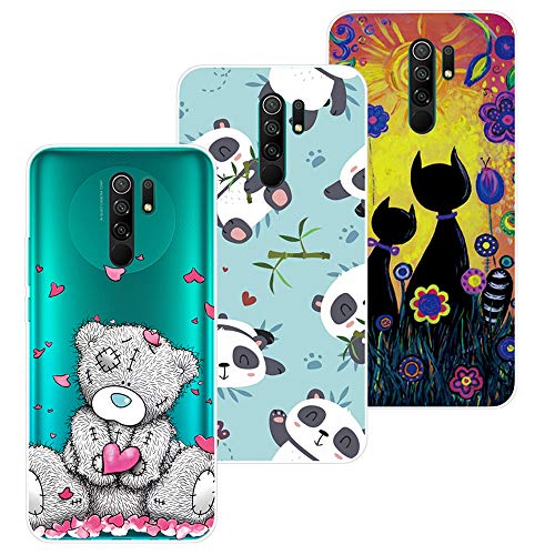 QC-EMART 3 Pezzi per Xiaomi Redmi 9 Cover Custodia in Silicone Morbida Trasparente con Disegni Stilosa Sottile Protettivo Case Copertura per Xiaomi Redmi 9 Panda Orso Unicorno