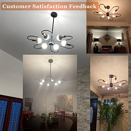 【Lampadario Soggiorno Moderno】 I lampadario soffitto a 6 luci sono progettati con un'estetica moderna e lo stile del satellite artificiale sembra far sentire le persone nello spazio, aggiungendo un senso di moda alla tua casa. Il più grande punto culminante di questo lampadario: abbiamo abbandonato il semplice design lineare del braccio della lampada. Ogni braccio della lampada ha un design curvo e contorto unico, che sembra un fiore appeso al soffitto.