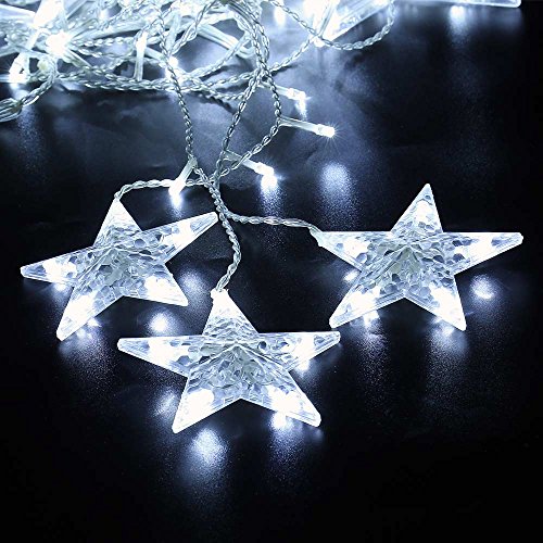 【138 Pezzi LED】La tenda luminosa Impermeabile IP65 fatta con 138 led, Cavo trasparente, 6 stringhe con stella grande, 6 stringhe con stelle piccola.