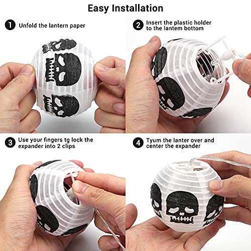 Qedertek Halloween Decorazione con Luce Bianco, 20 Lanterna con Figura di Scheletro, Catena Luminosa a Batteria per Halloween, Luci Halloween per Decorazione Interno ed Esterno, Giardino, Albero,Festa