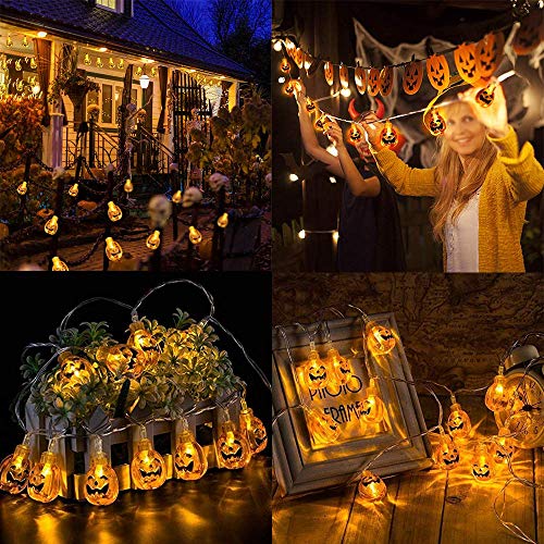 Qedertek Luci Halloween Decorazioni con 20 Zucca, Lampada Pumpkins Catena Luminosa Esterno 20 LED 2.3M, Lampada Jack-o'-Lantern Luci Decorazione Halloween, Luci a Batteria per esterno ed interno