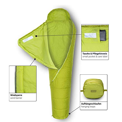 Qeedo Hitazo Sacco a Pelo, Sacco a Pelo Mummia, Leggero, Dimensioni di Trasporto ridotte 225x80 cm (LuXLa) - Verde