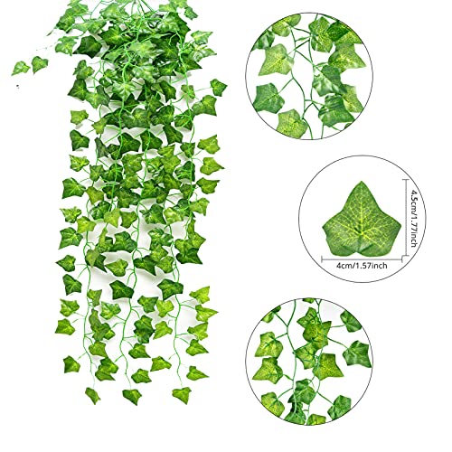 QeeFop Pianta Artificiale Edera, 12 Pezzi Piante di Edera Artificial Pianta Rampicante Ghirlanda Edera Artificiale Finta Fogliame Verde Foglie Appeso Pianta di Vite per Decorazione da Parete (Cyan)