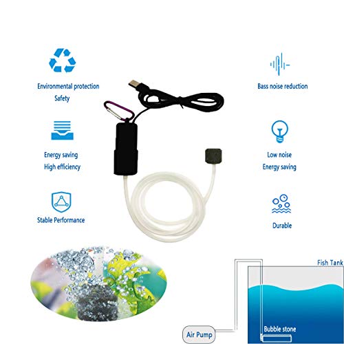 QeeHeng Mini pompa ad aria per acquario USB, pompa di ossigeno per acquario ultra-silenziosa, generatore di ossigeno per acquario piccolo, con pietra d'aria e tubo in silicone, nero