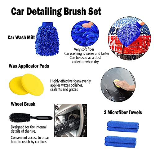 Set di 15 pennelli per auto per dettagli: questo set di pennelli per auto include 5 spazzole per dettaglio, 1 guanto per lavaggio auto, 1 spazzola per ruota, 1 spazzola per pulizia dell'aria dell'auto, 3 spazzole per filo, 2 asciugamani in microfibra, 2 tamponi per applicatore per cera. Con un ragionevole kit di bellezza per auto, è possibile soddisfare le vostre esigenze di base per la pulizia dell'auto.