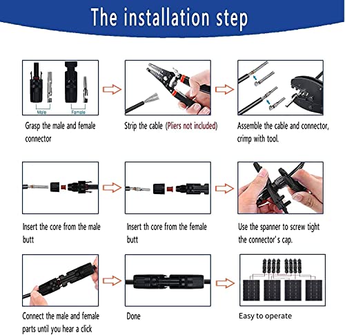 Connettori per pannelli solari realizzati in PPO + PA, perno conduttore in rame stagnato. Eccellente resistenza all'invecchiamento e resistenza ai raggi UV, pioggia sopravvissuta, venti ad alta forza e neve per più di molti anni.