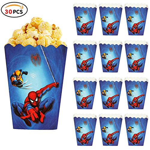 Qemsele Scatole di Popcorn, 30 Pezzi Cartone Animato Scatole di Carta per Regalo per Feste di Compleanno, Serate di Cinema, Carnevale, teatro e Feste (Spiderman)