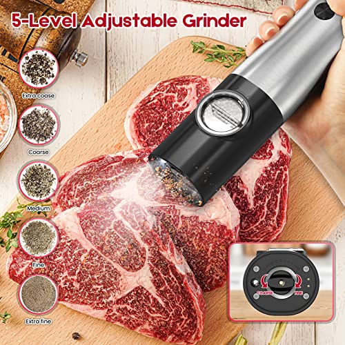 QENSPE Set di 2 Macina Sale Pepe Elettrico con Base Ricaricabile, Set Macina Pepe Sale Automatico, Macina Spezie Regolabile, Funzionamento con una sola mano, Acciaio Inox Premium, con Luce LED