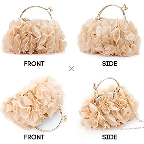QERMULA Pochette Floreale per Donna, Borsa da Sera, con Fiore, in Raso, per Feste da Ballo, Rosa, app. 23 x 13 x 14cm / 9.05 x 5.11 x 5.51in