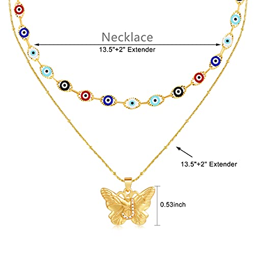 Qerrassa Iniziale Collana Farfalla Oro Multifilo Malvagia Occhio Girocollo Collane Acciaio 14k Placcato Oro Dainty Link Graffetta Gioielleria