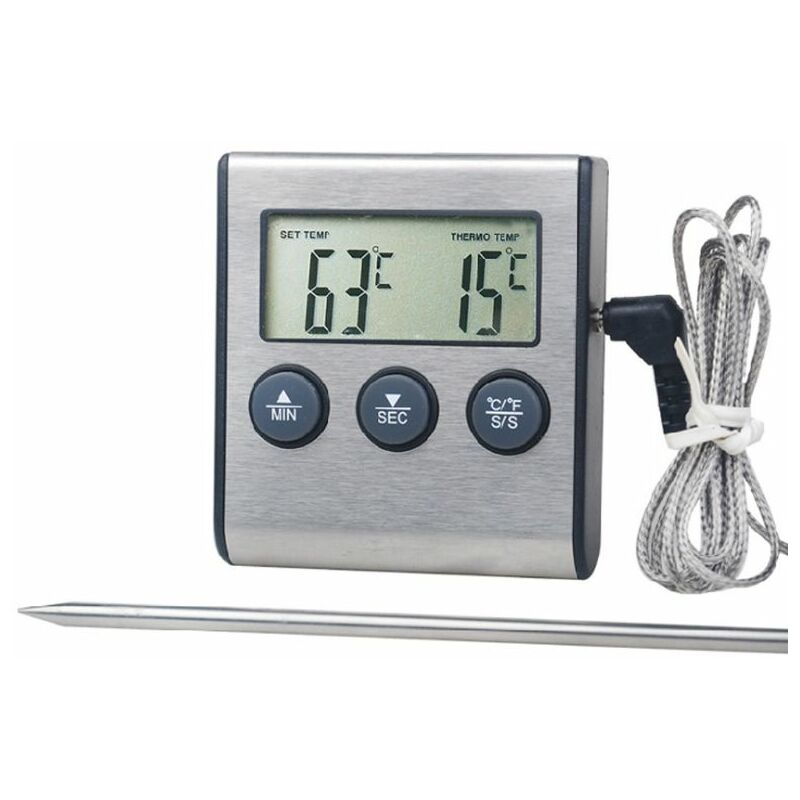 Termometro da cucina digitale con ampio display LCD, sonda lunga per forno grill, strumento di misurazione timer allarme temperatura cottura carne Caratteristiche: Realizzato in materiale di alta qualità, solido, resistente, non -tossico e inodore, sicuro da usare e innocuo per la salute. Il termometro da cucina digitale può rilevare rapidamente la temperatura del cibo. Le temperature preimpostate possono essere modificate manualmente in base alle diverse esigenze e l'allarme suonerà quando il cibo raggiunge la temperatura interna impostata. Celsius/Fahrenheit sono commutabili, adatti per la maggior parte dei paesi. Può essere attaccato a utensili da cucina in ferro o frigoriferi e appeso con un foro posteriore, può anche essere posizionato con una staffa. Semplice e portatile. L'allarme del conto alla rovescia ti ricorda quando il cibo è pronto. Ideale per barbecue, forno, cibo e così via. < p>Solo termometro per alimenti, la demo di altri accessori nella foto non è inclusa!