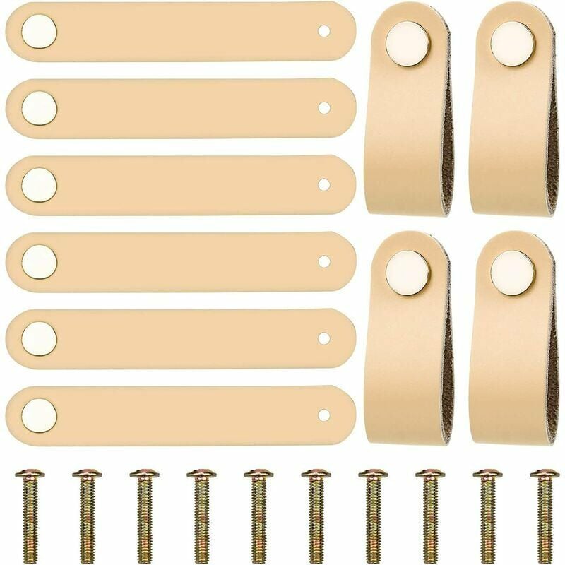Specifiche Materiale: pelle PU Quantità: 10 Manico in pelle: lunghezza: 14,2 cm, lunghezza dopo la piegatura: 7 cm;