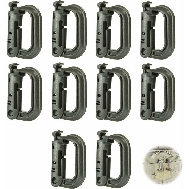 aperture. Il design dell'anello a D è il più conveniente e ti consente di aggiungere o rimuovere rapidamente dispositivi leggeri, resistenti e silenziosi. Le dimensioni del manico tondo o della tracolla Molle possono essere utilizzate per collegare diversi oggetti alla borsa. Il moschettone può essere utilizzato come cinturino ed è ideale per collegare l'attrezzatura a zaini/borse tattiche dotate di sistemi Molle. Specifiche: Materiale: plastica Colore: verde Dimensioni: 4,5 * 3 /1,77 * 1,18 pollici Pacchetto incluso: 10 * Fibbia con moschettone Trova le risposte in Informazioni sul prodotto, Domande e risposte e Recensioni