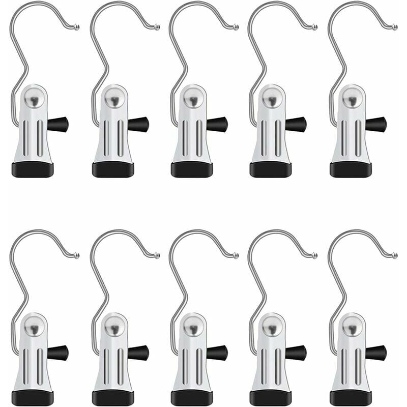 Materiale robusto: le clip in acciaio inossidabile per impieghi gravosi garantiscono qualità e longevità, sono più resistenti dei ganci in plastica, compatte e leggere e hanno una vasta gamma di usi. La molla può facilmente aprire la sospensione. Queste clip possono facilmente appendere vestiti, scarpe o stivali per riporli o asciugarli.La maniglia è antiscivolo: c'è un rivestimento in gomma liscia all'estremità della clip e non c'è nessuna maniglia antiscivolo per garantire che i vestiti siano saldamente fissato in posizione. E poiché la superficie è morbida e molto piatta, puoi anche proteggere i tuoi effetti personali da eventuali danni.Stivali, vestiti, scarpe e altri indumenti non rimangono graffi o graffi. Adatto per molte occasioni: molto facile da usare, molto adatto per appendere stivali, ma anche per cappelli, cappotti, sciarpe, guanti, pantaloni, scarpe, lenzuola, asciugamani, calzini, ecc. Puoi farli appendere gli asciugamani in bagno, appendere l'organizzatore sul palo