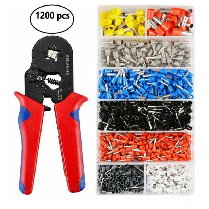 Comodo set di pinze a crimpare: ogni set viene fornito con uno strumento di crimpatura e 1.200 puntali isolati e non isolati da 0,25-10 mm² per la gestione di piccoli progetti di bricolage e grandi riparazioni elettriche. Design di crimpatura a quattro assi: poiché la pressione viene applicata al manicotto da tutti e quattro i lati, lo strumento di crimpatura fornisce una crimpatura affidabile e di alta qualità. Se il manicotto non si adatta, puoi regolare il manicotto del cricchetto a pressione in modo che il cavo raffinato sia incluso! Pinza crimpatrice autoregolante: la forza di pressatura è efficace attraverso la rotella di regolazione, che è fissata dalla vite. L'officina di pressatura si adatta automaticamente ai rispettivi manicotti isolanti, autobloccanti e autoamovibili per risparmiare fino al 50% di energia durante la crimpatura. Facile da usare: grazie al rivestimento antiscivolo sull'impugnatura ergonomica, le nostre pinze a crimpare sono perfette per l'uso quotidiano da