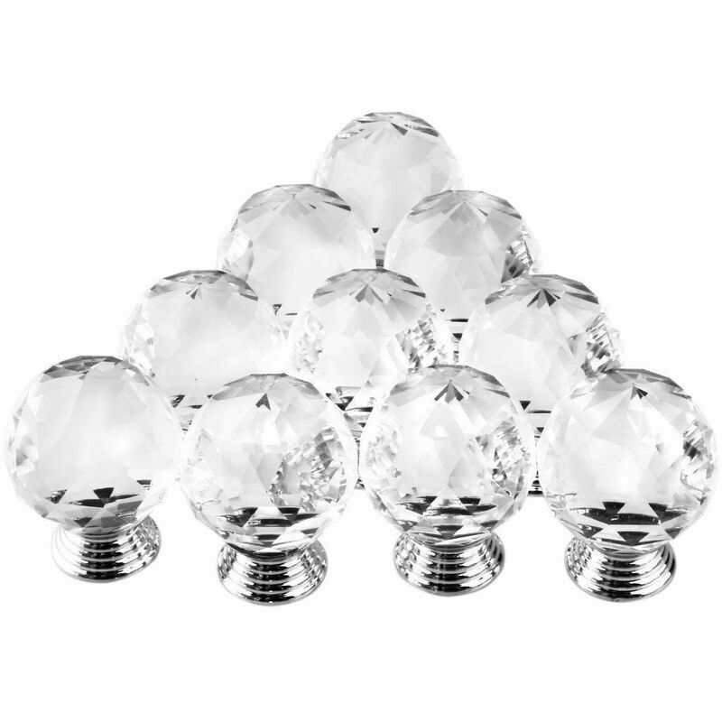 Questi prodotti sono principalmente per la decorazione di cassetti. Materiale: cristallo trasparente e lega, luccicanti e scintillanti. Colore?Trasparente Dimensioni: ca. Diametro: 1.18"" (30mm), Altezza: 1.57"" (40 mm). Ideale per sostituire le maniglie delle tazze danneggiate/rotte per nuove installazioni, decorare e dare un nuovo look alla tua credenza, credenza, armadio, cassetto e altri mobili Contenuto della confezione: 10 maniglie a conchiglia e Viti.