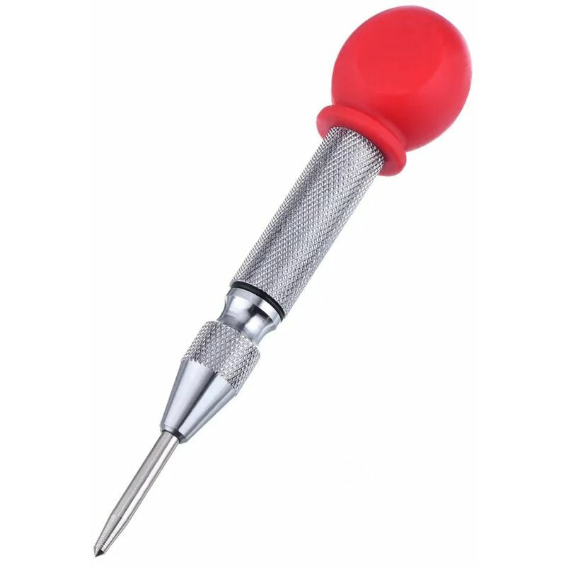 Punzone centrale in acciaio: 13 cm, con molla automatica. Puoi segnare il punto di partenza su lastre di metallo, legno, superfici in plastica e altri materiali ed evitare che chiodi o viti si muovano. Materiale resistente: il punzone è realizzato in acciaio al cromo vanadio temprato, che può resistere a forti impatto, usura, ruggine e prolungamento della durata di servizio. Impatto ripetibile: il cappuccio rosso dell'impatto regolabile può aumentare o ridurre l'impatto;