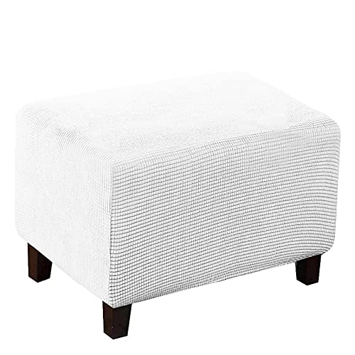 QETUOA Copri Pouf Elasticizzato Rttangolare Copri Pouf Poggiapiedi Copri Pouf Divano Copri Pouf Rett Antiscivolo Lavabile Sofa Protettore (Bianca,XL)