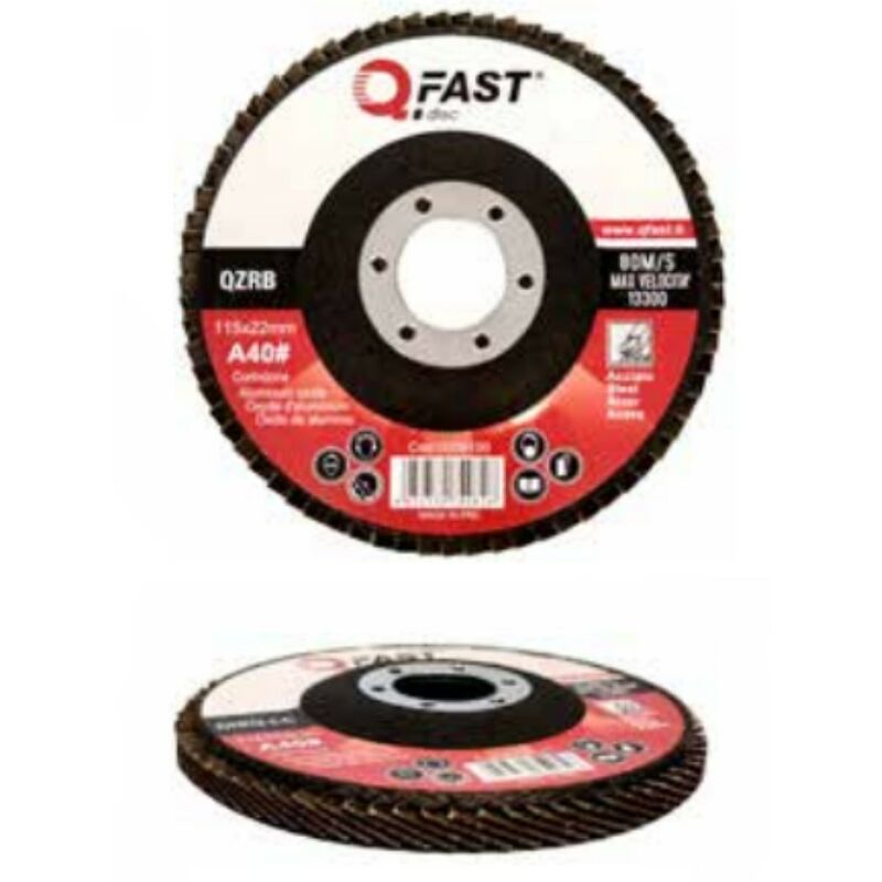 QFAST - DISCO LAMELLARE AL CORINDONE (OSSIDO DI ALLUMINIO) Ø115x22MM GRANA 60 - LUNGA DURATA E RESISTENZA ALLO SFILACCIAMENTO Lunga durata, resistenza allo sfilacciamento e stabilità della superficie abrasiva. Prestazioni eccellenti in utilizzi su acciaio. La plastica si consuma con l'abrasivo, grazie alla lunga durata garantisce minori tempi di inattività per la sostituzione del disco con elevata velocità di impiego. Materiale abrasivo: Corindone (ossido di alluminio). È particolarmente indicato per acciai inossidabili ed acciai dolci, acciai per utensili, ghisa, metalli non ferrosi, plastica, laccati e legno. Applicazioni e caratteristiche: _ Rimozione delle scorie. _ Rimozione di sbavature. _ Rettifica in piano. _ Rimozione di fusione di saldature _ Effetto lucidante. _ Economico. _ Ottima resa e lunga durata. _ Alta velocità di taglio. _ Molatura pratica e sicura. _ Senza sbavature. _ Acuto.