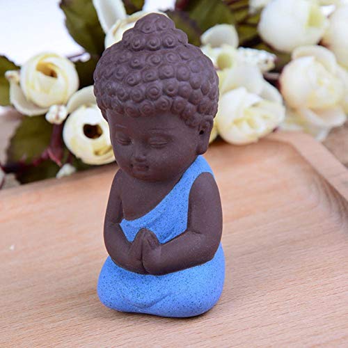 QFQH 1 pz Mini Buddismo Cinese monaci Zen Buddismo Piccole Statue Monaco Meditazione Monaco mestiere in Miniatura Statue di Buddha Argilla