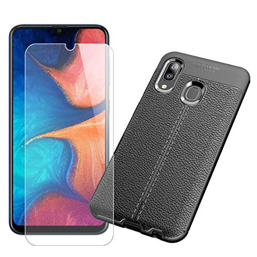 QFSM Cover per Samsung Galaxy A20e + Pellicola Protettiva in Vetro Temperato - Morbida Silicone Case Flessibile TPU Fibra di Carbonio