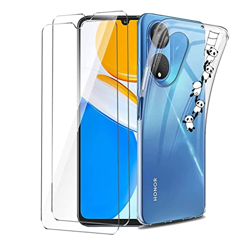 QFSM Protettiva Cover per Honor X7 Silicone TPU Custodia Trasparente Case Shell + 2 PCS Vetro Temperato Pellicola Vetro Glass Film (6.74") - Panda