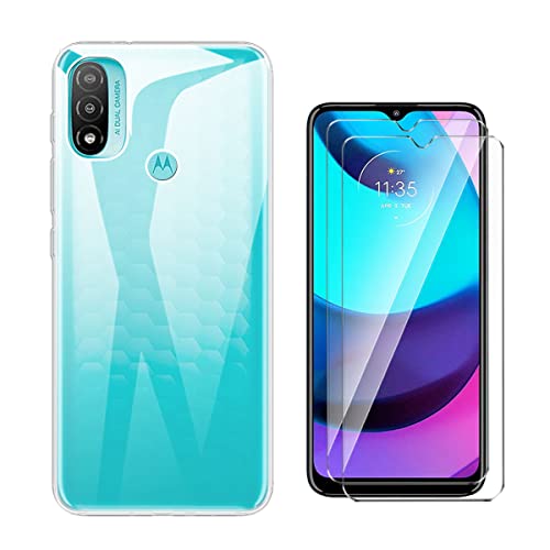 QFSM Protettiva Cover per Motorola Moto E20 Silicone TPU Custodia Trasparente Case Shell + 2 PCS Vetro Temperato Pellicola Vetro Glass Film (6.5") - Trasparente