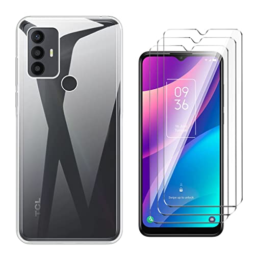 QFSM Protettiva Cover per TCL 30 SE Silicone TPU Custodia Trasparente Case Shell + 3 PCS Vetro Temperato Pellicola Vetro Glass Film (6.52") - Trasparente