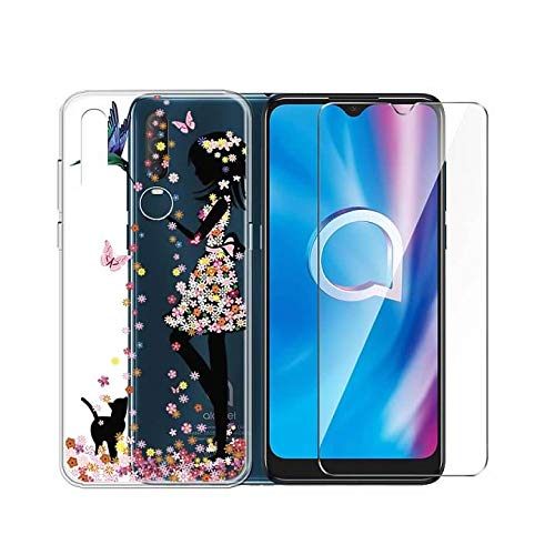 QFSM Protettiva Cover + Vetro Temperato per Alcatel 3L 2020 (6.22"), Silicone TPU Case Morbido Custodia Trasparente Shell e 9H durezza Vetro Temperato Pellicola Vetro Glass -WM49