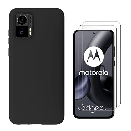 QFSM Protettiva Cover + Vetro Temperato Per Motorola Edge 30 Neo (6.28"), Silicone TPU Case Morbido Custodia NeroShell + 2PCS 9H durezza Vetro Temperato Pellicola Vetro Glass - Black