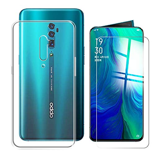 QFSM Skin Protettiva Case Cover + Vetro Temperato per Oppo Reno 10x Zoom (6.6") TPU Custodia Trasparente Shell, 9H durezza Durevole Temperato Pellicola Vetro Glass Film Protezione-Clear