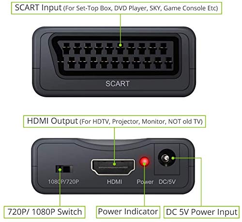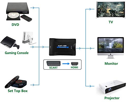 ✔ Convertitore da SCART a HDMI - Il nostro Convertitore Audio Video converte il segnale video composito analogico Scart e il segnale audio stereo FL/ FR in segnale HDMI. (Nota: NON supporta da HDMI a Scart!)